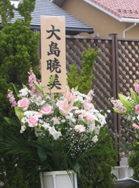 祭壇は沢山の花に囲まれて笑顔の遺影が飾られていました。